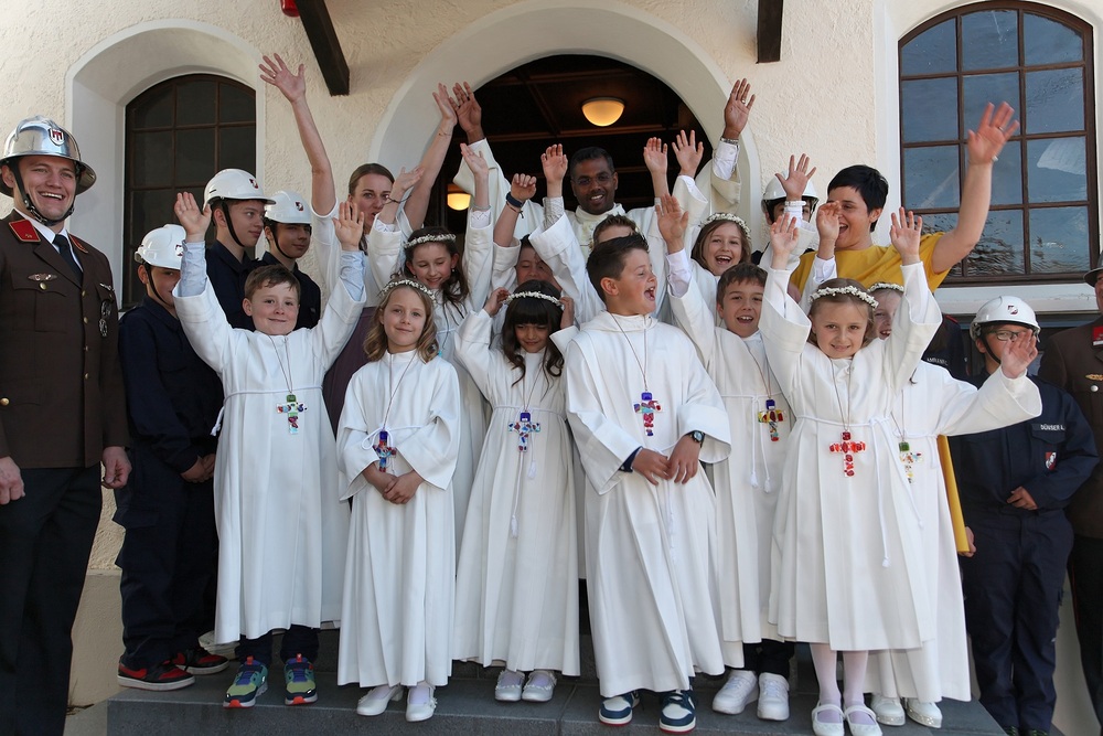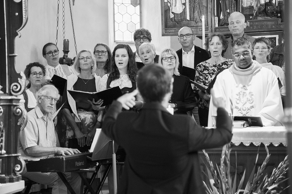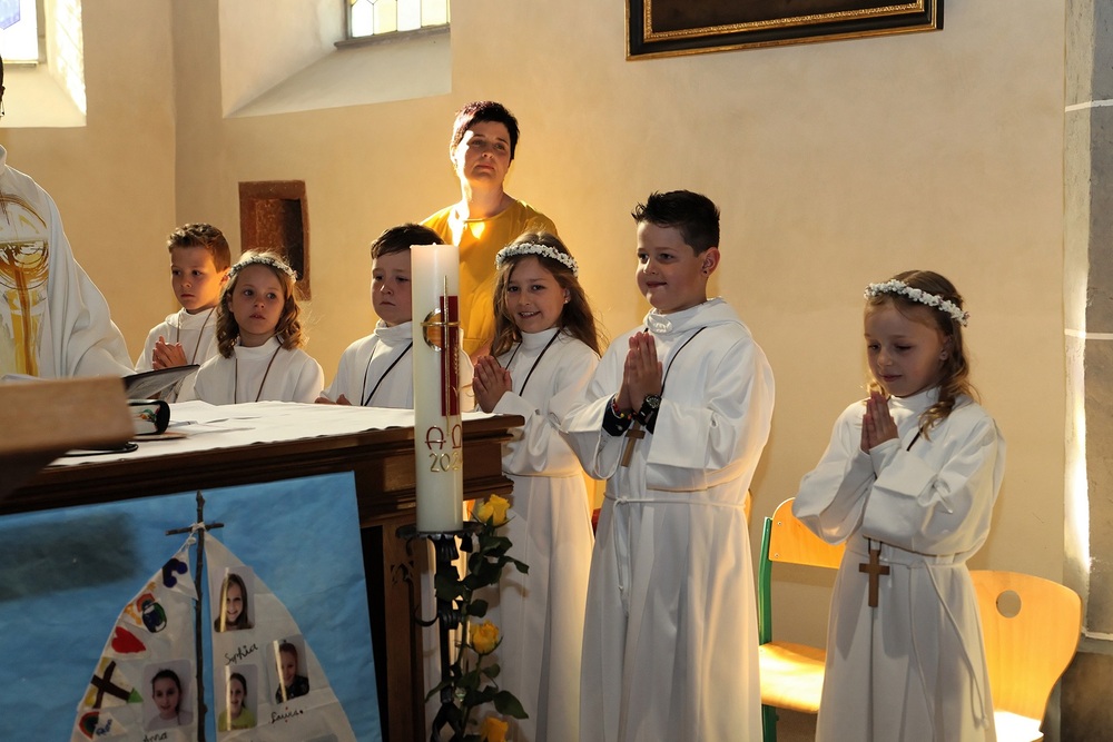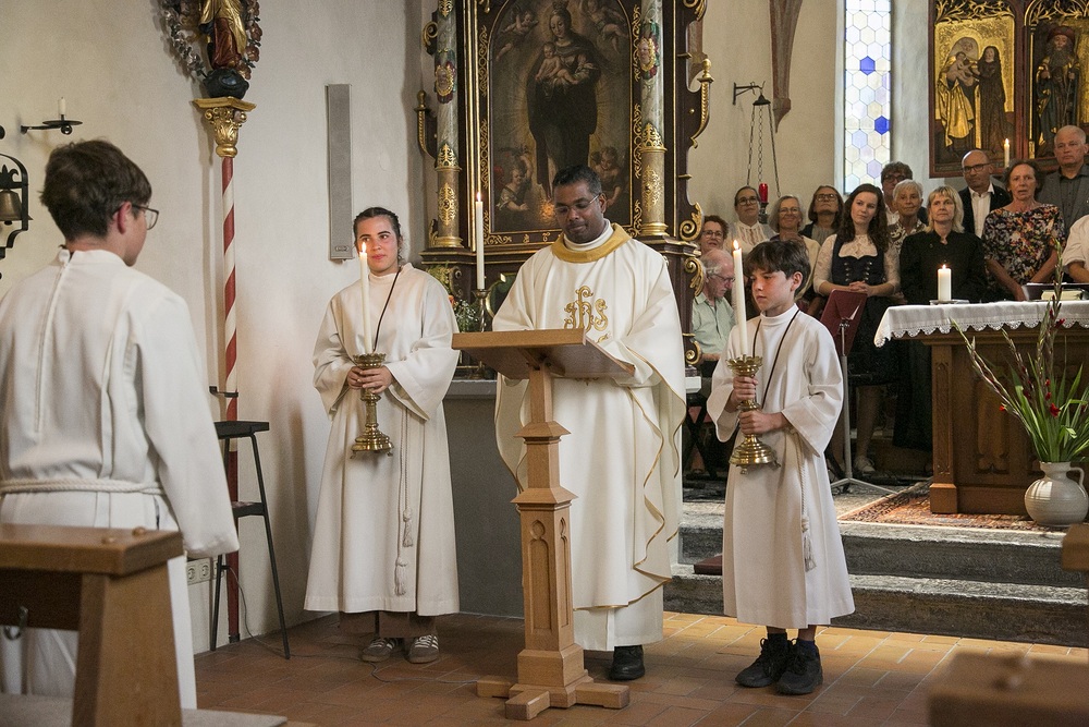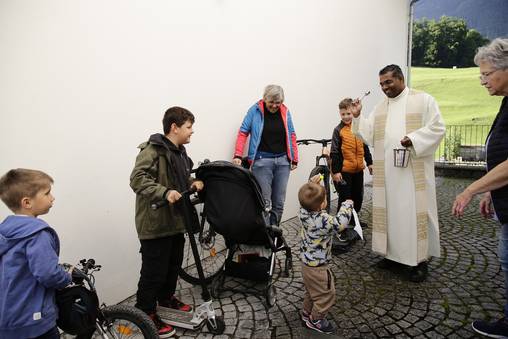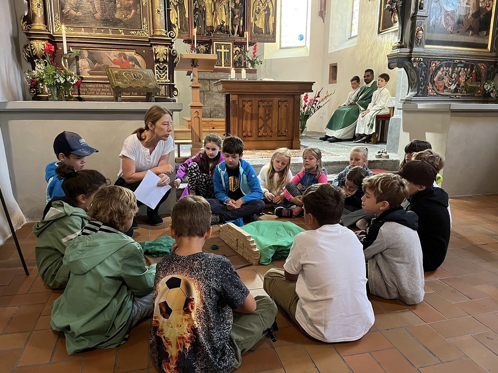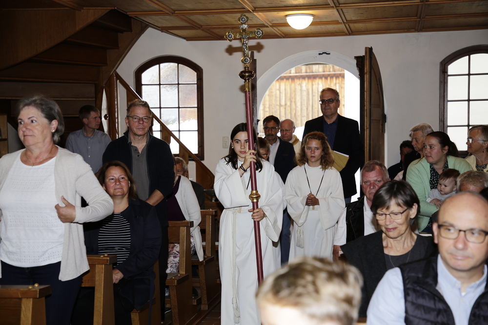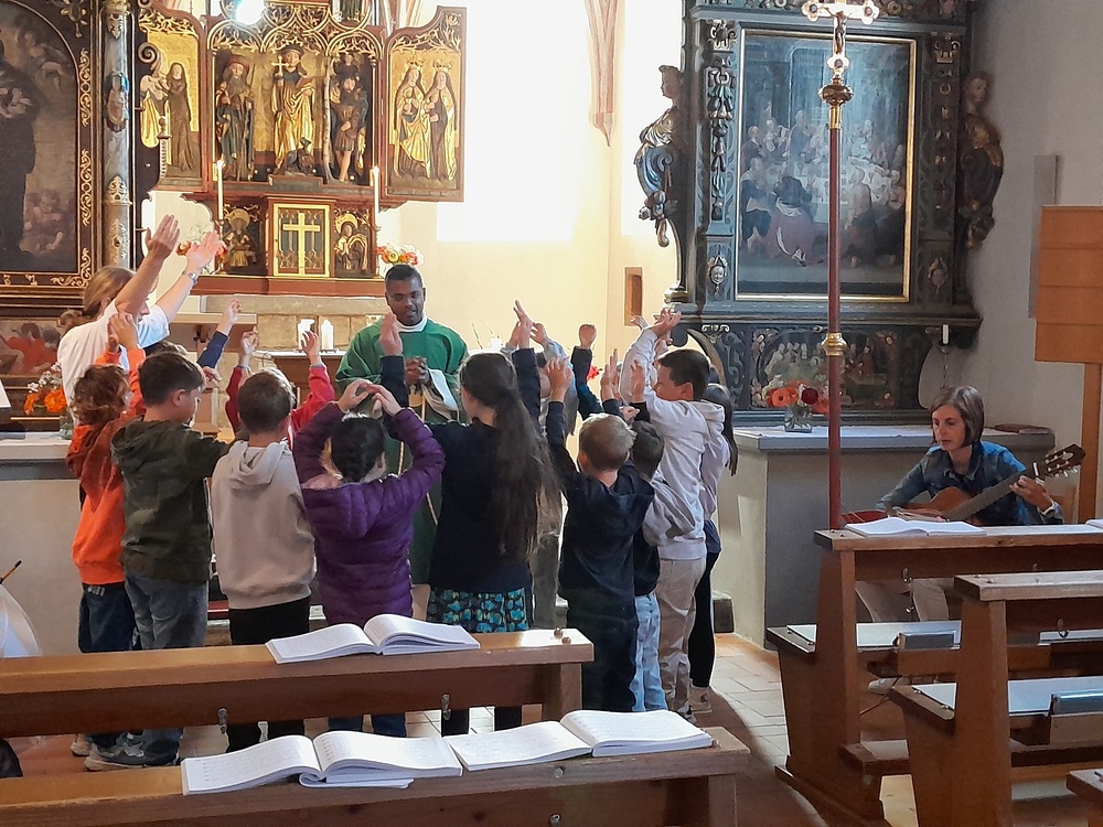 Pfarrer Lojin feierte mit zahlreichen Kindern und Erwachsenen den Erntedankgottesdienst. Sabrina las den Kindern eine Geschichte zum Thema Dankbarkeit vor. Theresia und Otto übernahmen einmal mehr die musikalische Umrahmung.