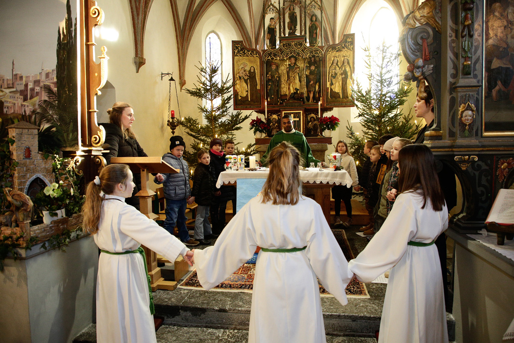 Am 1. Adventsonntag verabschiedete sich Stephan nach 16 Jahren aus dem Ministrantendienst. Angelika bedankte sich im Namen des Mini-Teams sehr herzlich. Den lobenden Worten von Pfarrer Lojin folgte ein großer Applaus der Pfarrfamilie.