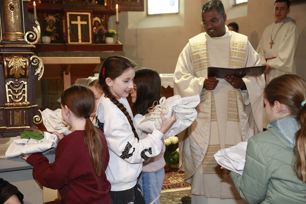 Neun Kinder wurden am Christkönigssonntag in die Ministrantengemeinschaft aufgenommen. Mit Sophia, Anna, Rosa, Linda, Valerie, Adam, Julius, Raphael und Emil freuten sich Pfarrer Lojin und die Rönser Pfarrfamilie.