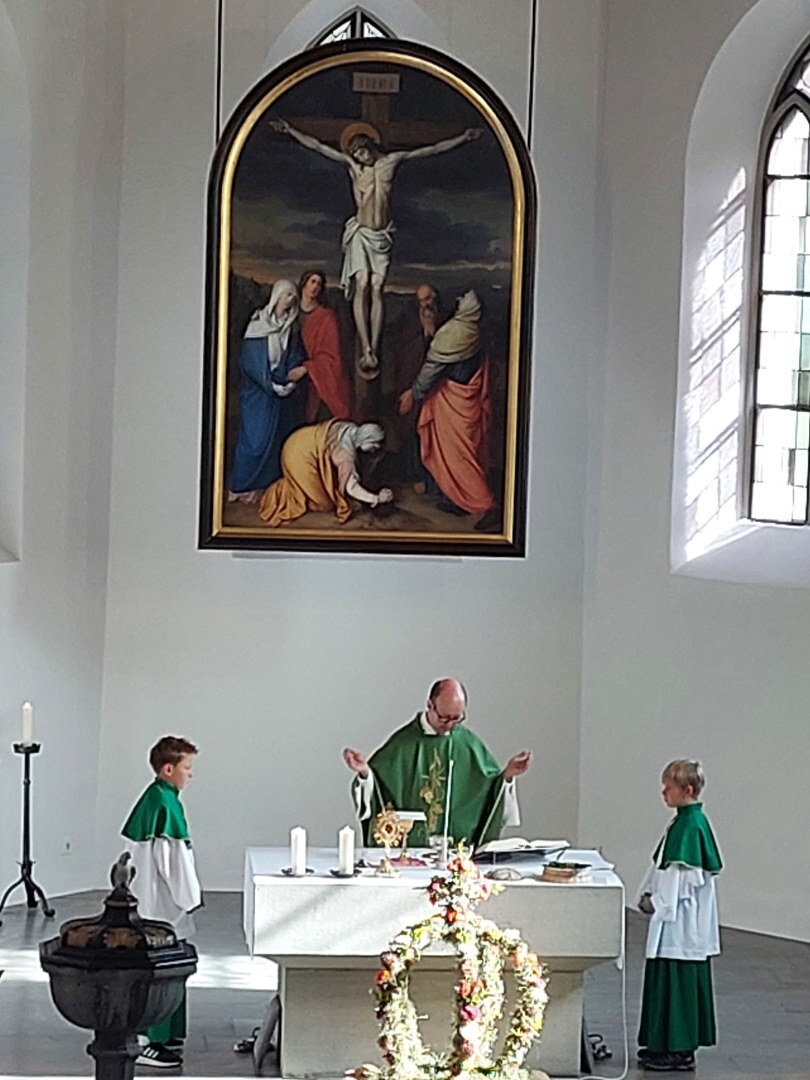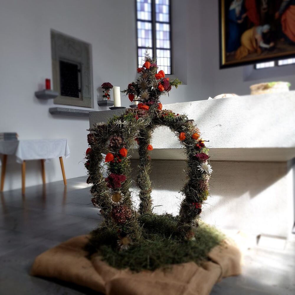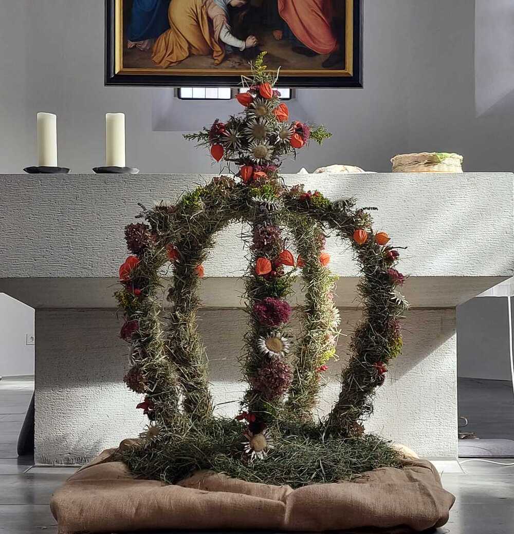 Am Sonntag, 24.09.2023, feierte unsere Pfarrgemeinde in einer von den Bäuerinnen prachtvoll geschmückten Kirche Erntedank.